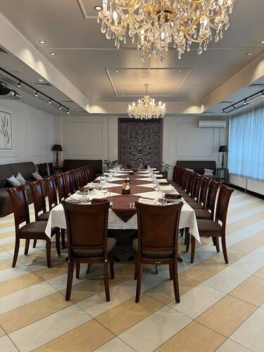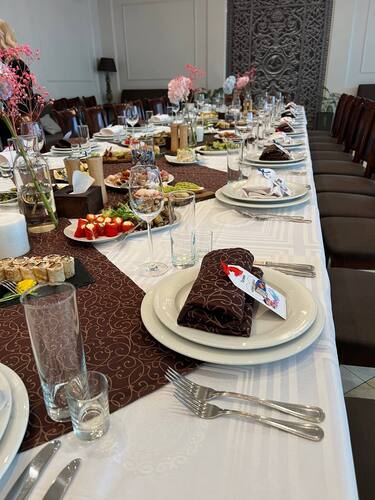 Банкетний зал – ідеальне місце для заходів, таких як весілля, корпоративи чи ювілеї. Простір може вмістити до 70 осіб, пропонуючи елегантний інтер'єр і можливість декорування відповідно до тематики події.